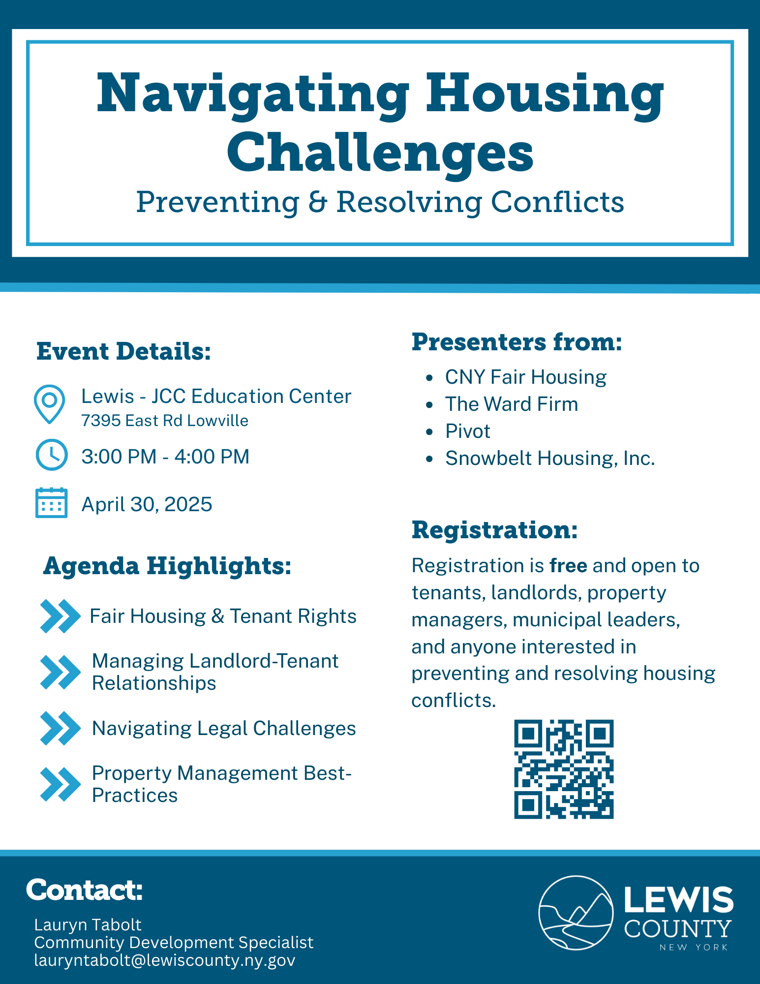 Join us for the Lewis County Housing Workshop on April 30, 2025, from 3:00 PM to 4:00 PM.