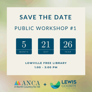 We are pleased to announce the first public workshop focused on part one of the CCARP Plan! The workshop will be held at the Lowville Free Public Library.