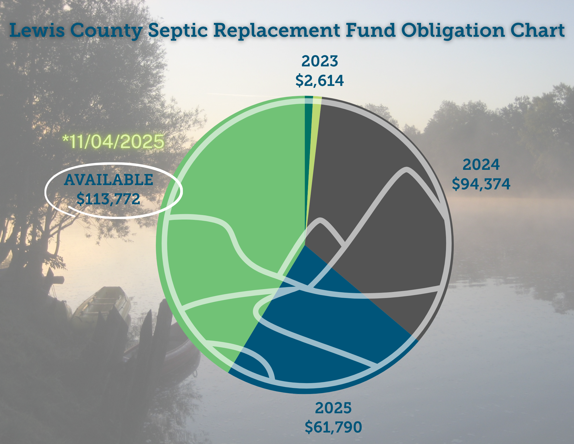 The state is providing Lewis County with funds to work with local property owners. Lewis County will provide grants to reimburse the property owner for up to 50% of the costs (up to a maximum of $10,000) of their eligible septic system project, include: