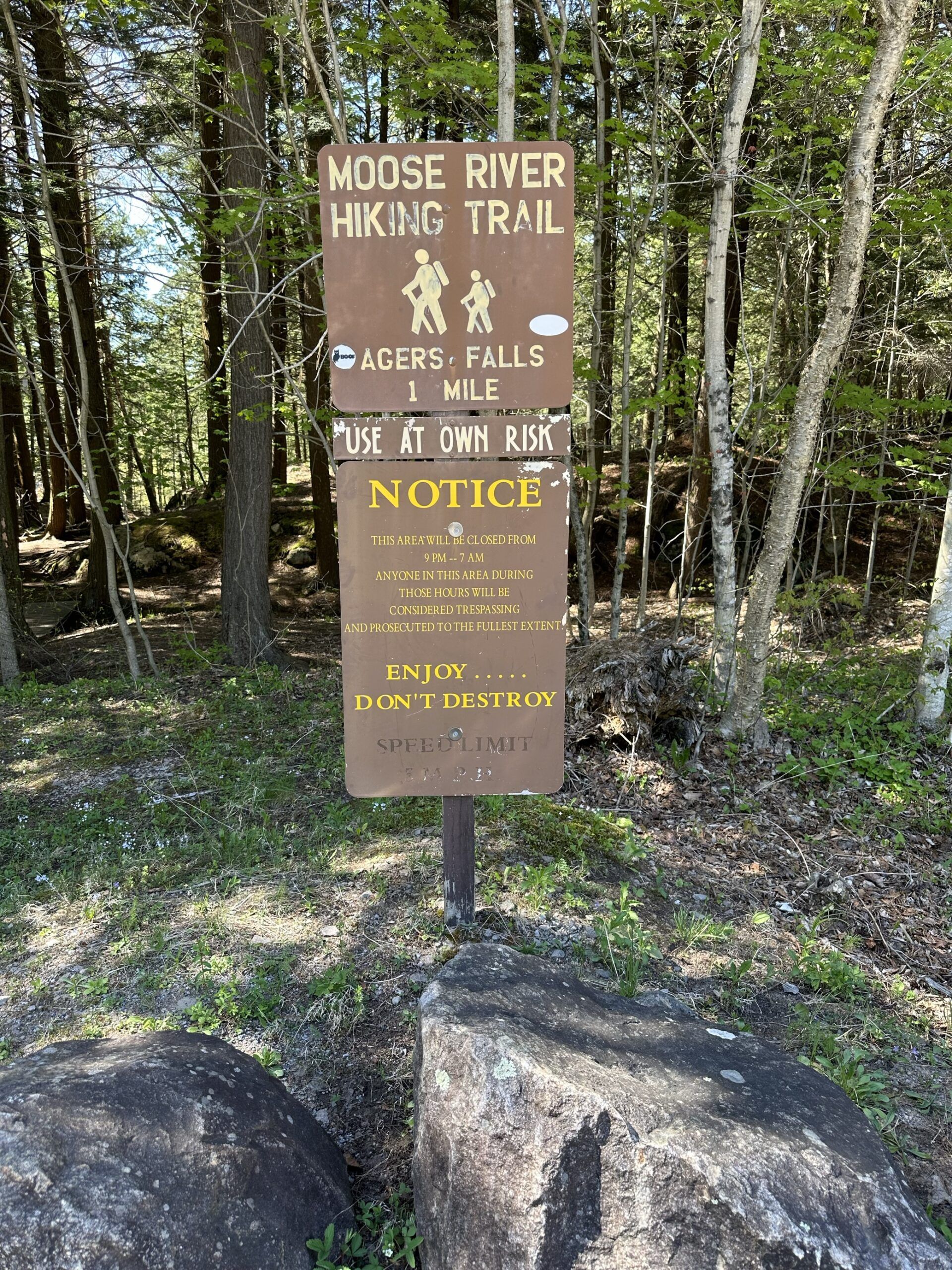 The Moose River Trail is a pleasant walk along the river that starts at a parking area west of the Agers Falls Recreational & Historical Area along Lyonsdale Road and ends at the main parking area at the falls. The trail is marked and even if it wasn’t, it’s pretty easy to follow the trail for the most part.
