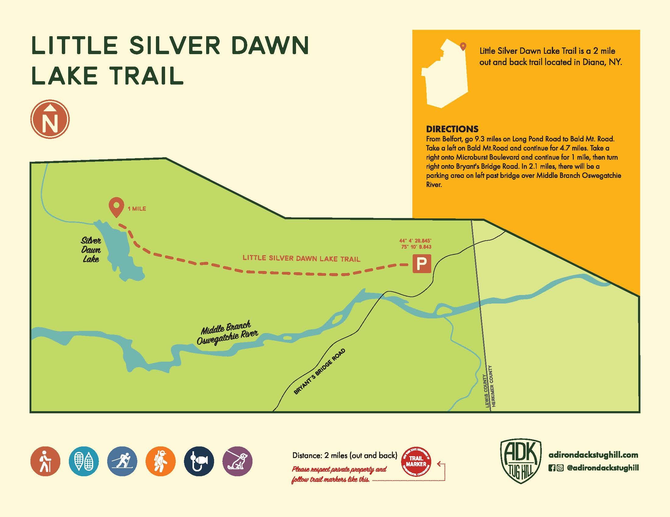 Little Silver Dawn Lake Trail is a 2 mile out and back trail located near Diana, NY.