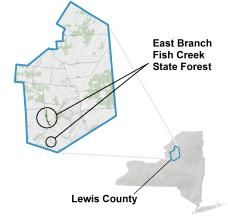 This property is most accessible by motor vehicle from the Michigan Mills Road, a town road in the town of West Turin. Motor vehicles can be driven into the property nearly to the bridge over the East Branch of Fish Creek. The road will be signed as open to public motor vehicle use to a turnaround and parking area just short of the bridge.